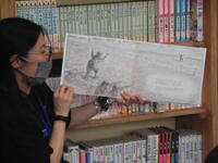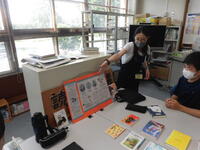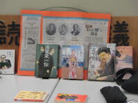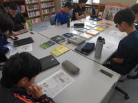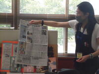新紙幣の発行に伴い、「3人の”顔”に迫る」の新聞記事を活用し、本校にある書籍の紹介をしてくれました。