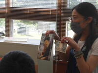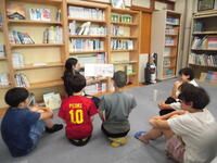 小学5~6年生には、児童のリクエストから少しだけ怖いお話をしてくれました。児童たちは恐る恐る司書さんのお話を聴いていました。また、今年も戦争に関する絵本を紹介してくれました。実際の話を題材にしたお話から、世界平和を考える機会になったと思います。いつも児童のために工夫を凝らして行ってくれることで、児童たちもたくさんの本と出合います。いつもながらではありますが、図書館司書さんに心から感謝したいと思います。