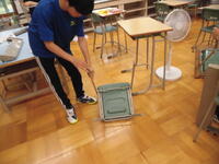 避難訓練では、給食後に地震が発生したと想定して訓練を行いました。
