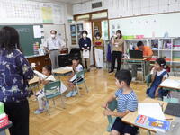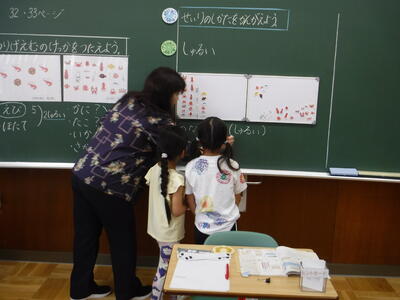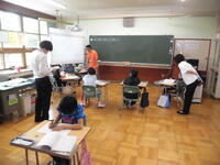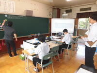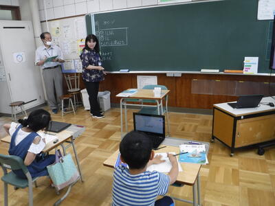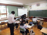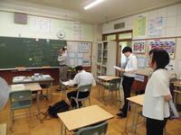 小学校1・2年生における複式の授業を見ていただきました。複式の授業では、児童が「ひとり学び」「ふたり学び」により、学習リーダーの活用や自分たちで学習を進める場面が髄所にあります。そこで「対話」を行うことにより、学びを確認したり深めたりするなど、主体的に学ぶ姿を見ることができます。今回の授業のみならず、日常的にも児童生徒の資質・能力を確実に育成しております。