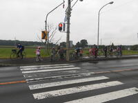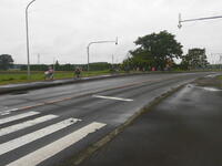 雨は降っていませんでしたが、路面がぬれて水たまりができている状況の中、児童生徒らは元気に登校してきました。学校前の信号のところに・・・・・