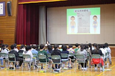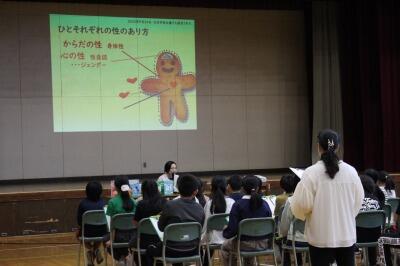 子どもたちと一緒に「いのちの授業」を行いました。助産師さんに来校していただき、授業を行いました。