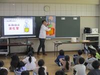 実際に腸の模型を使った説明や、楽しいクイズなどもあり、子どもたちも興味津々!