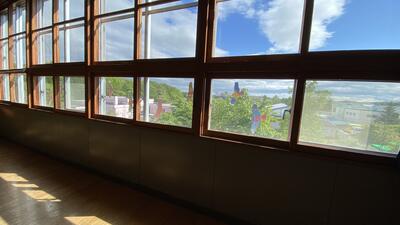 校舎内を見回りしていると、3年生で窓ガラスに鳥さんが衝突しないように作った「バードセーバー」が3階の多目的室の窓に貼ってあるのを見つけました。空を飛んでいるようにきれいに貼られています。考えてくれた3年生ありがとう。ぜひ「参観日」や「森ック文庫譲渡会」などでお越しいただいたときに一緒にご覧ください。