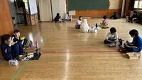 1・2年生は、体育館でレクをして遊んでから、11:00ごろ学校を出発しました。
