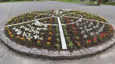 PTA「春の奉仕活動」で整備していただいた花壇に、業務技師さんが穴を開けてくれました。そこに子どもたちが花の苗を丁寧に植えました。花壇の完成がもうすぐです。今日は1・2年生が花を植える予定です。PTAの花壇整備係の皆さんには、お手入れのご協力をお願いすることとなります。よろしくおねがいします。