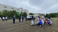 全学年で、交通安全教室が行いました。写真は、3年生がグラウンドで学習している様子るです。車両と時速30kmで衝突したらどうなるかをダミー人形の動きを見て怖さを体験しました。左折巻き込みや車の死角など知識も増えたと思います。「青信号でも、左右を確認して車が来ていないかどうかを確認してから渡る」と改めて交通安全を意識することを誓いました。