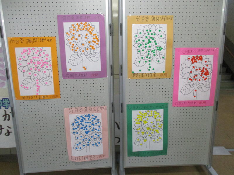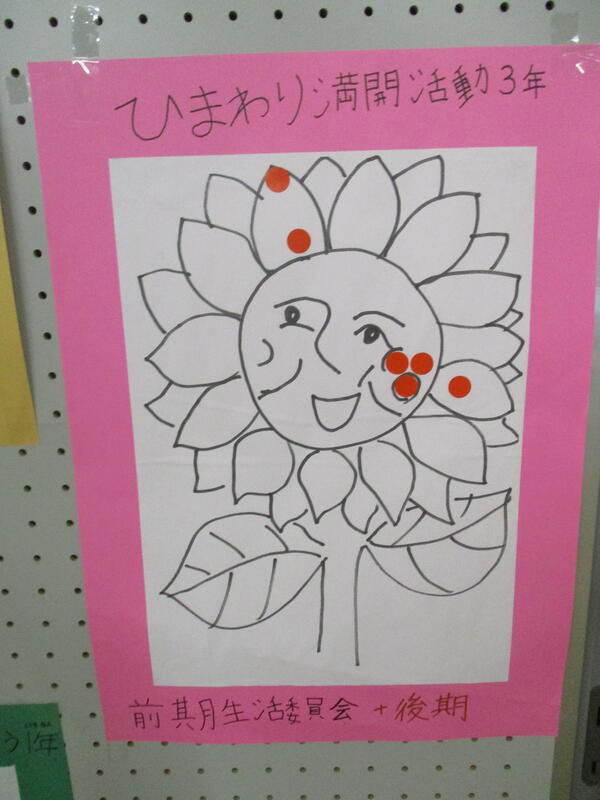 あいさつ運動の「ひまわり満開運動」のシールがこんなにも増えました!!最近では、効果がテキメンに出ています。廊下等で会った時、「こんにちは!教頭先生!!!」という元気なあいさつが広がってきています。子どもたちの元気な挨拶に負けじと私も元気にあいさつを返します。私はまだまだ負けていませんよ!!
