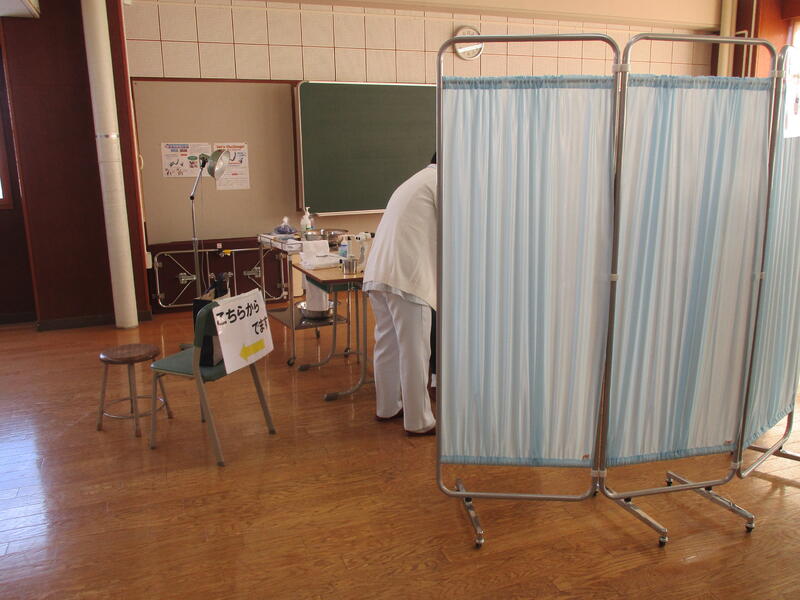検診が続いています。多目的室でソーシャルディスタンスを守って、上手に待っている姿は1年生です!!