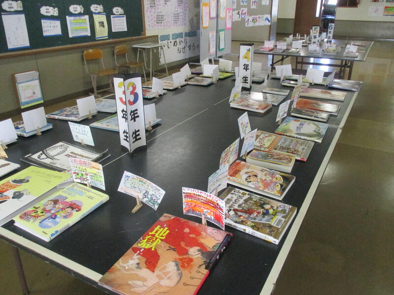 「読書週間」の一つで、「ポップ」づくりをしました。一人一冊好きな本を決めて、みんなが読みたくなるようなポップをつくりました。玄関に飾ってありますので、参観日等でご覧になってください。