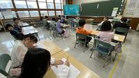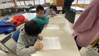2年生教室では、朝学習プリントに取り組んでいました。「これはわかる―」と隣の人と確認しながら頑張りました。