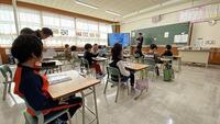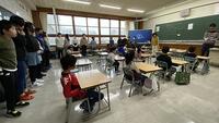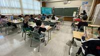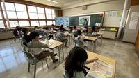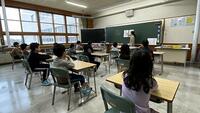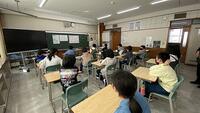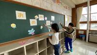朝の登校時は、玄関前で1列に整列して玄関が開くのを待っています。毎朝校長先生が玄関先であいさつをすると、元気なあいさつを返してくれます。新しい場所の教室での生活がスタートし2日目になりました。学級での生活の仕方や係分担、進級をしてこれらの目標や心構えなどについて意識する機会がたくさんあります。