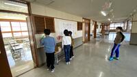 6年生が登校し、入学式に向けて会場準備をしてくれました。