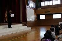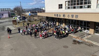 春の火災避難訓練を行いました。今年度は、近隣の保育園や幼稚園に声を掛け、小学校グラウンドに避難をする練習をしました。火災警報器のサイレンの音が鳴り、どの児童も真剣に「おはしも」のルールで避難できました。体育委委員の児童が、玄関前の雑巾を用意してくれました。靴底を拭きやすいように、雑巾の両端に足でおさえる気配りをしてくれました。委員の皆さんありがとう。