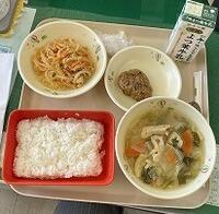 小学校で初の給食を食べました。先生方に見守られながら、みんなの量が同じになるように盛り付けをしたり、1つずつ慎重にお皿を運んだりしていました。スムーズに準備が出来て、皆でおいしく食べました。