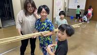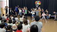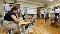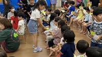 演技たっぷりの「おおきなかぶ」、保育園の子どもたちと一緒に楽しんだ「じゃんけん列車」、運動会で覚えた「よさこい」、そして最後に折り紙で作った「かぶ」を保育園の子どもたち一人ひとりに手渡しでプレゼントするという温かい交流が行われました。