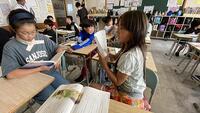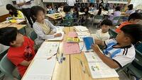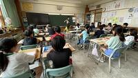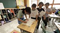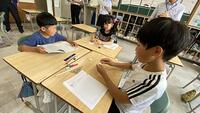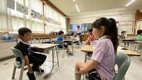 教科書の章の終わりには必ず単元テストを行っていますが、今回はその単元テストの前にプレテストを実施し、児童たちの現在の理解度を確認しています。このプレテストは、児童が苦手な部分を発見し、お互いに教え合いながら克服することを目的としており、全学年で行われています。