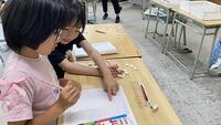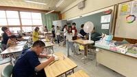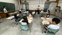 全部終わった人は、「〇つけ係」としてまだ終わっていない人の所へ出向き、困っている人へヒントを出したりしながら教えて丸を付けています。もちろん学習支援員の先生も指導に入り、皆でできるようになろうという雰囲気があります。時間が来ても熱心に取り組む児童たちの姿が見られ、その学ぶ姿勢はとても素晴らしいものです。