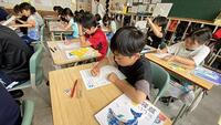 担任の先生が研修会で不在のため、5年生は担任外の先生と学習をする日でした。今まで学んできたことを振り返りながら、自分たちで学習を進めることができました。自分たちで調べたり、ペア学習で教え合ったりする姿は、担任の先生がいない寂しさを感じさせない立派なものでした。5年生の自主的な行動はとても頼もしく感じました。音楽では、得意の合唱をみんなで歌い、その様子をムービーに撮って担任の先生に送りました。来年度は、最上級生としてさらに成長してくれることを期待しています。