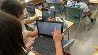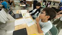 今回の授業では、その情報をもとに「分かったことをスライドにまとめあげ、お互いの成果を評価していく」という内容に挑戦しました。各グループのメンバーは共同作業を通じてスライドを作り上げ、その後、さらにより良いものにするために話し合いながら調整を行いました。子どもたちは意見を交換し合いながら、真剣な表情で取り組んでいました。一人ひとりの考えが反映されたスライドは、どのグループも個性豊かで魅力的です。最終的に完成したスライドは次回見せ合い、相互に評価し合う場面が持たれるようです。