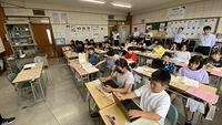 石狩教育局より石狩教育局長、石狩教育局次長、義務教育指導監の3名と千歳市教育委員会学校指導室長の計4名の方々にご来校いただき、全学級の子どもたちの頑張りを見ていただく機会がありました。