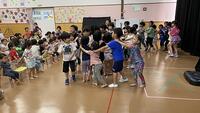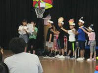 先日、国語の授業で「幼稚園やこども園のみんなが喜んでもらえるように、どのようにしたらいいかを話し合う。」ことを課題にした授業があり、その話し合いで決めたことを練習してきました。今日は、その成果を発表する場が設けられました。