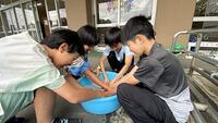洗剤を使った洗い方で効果の違いを確認しました。子どもたちはそれぞれ、洗剤を使ったときの泡立ちや、汚れがスムーズに落ちる様子を体感しました。洗濯の濃度など必要な知識を身につけました。