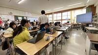 【5年生 科学技術大学インターンシップ生がいます】 科学技術大学インターンシップで学生が1名 5年生教室を中心に体験しています。子どもたちも休み時間など話しかけています。休み時間は、絵を描いている子も多かったです。