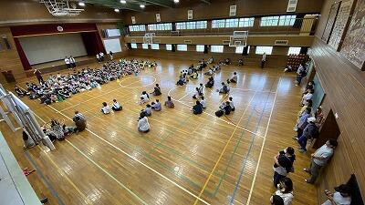 4時間目には、体育館で全校児童による校歌披露が行われました。練習を重ねてきた成果を存分に発揮し、子どもたちは力強く、心を込めて校歌を歌い上げました。保護者の皆様からも温かい拍手が送られ、子どもたちの成長を感じられる素晴らしい発表となりました。
