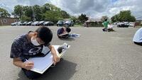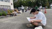 【6年生 絵画の授業】花壇と校舎の見える風景をいろいろな画角から描いていました。