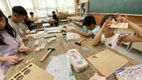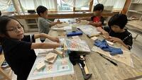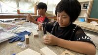 【3年生 図工で木工作業】 初めてのくぎ打ちで緊張しながらもなんとか作品を作りました。