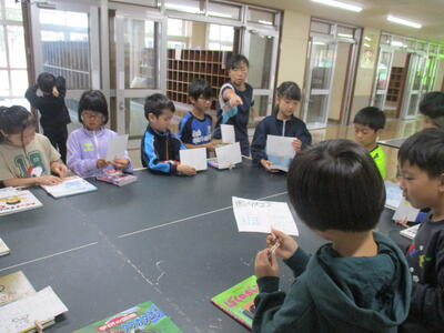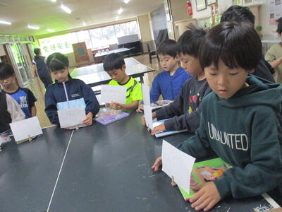 毎朝、朝読書やおすすめの本を紹介するポップづくりをしています。2日(木)には、読書の日として、本の読み聞かせを予定しています。本が好きな子が多くなるようにこれからも活動していきたいと思います。