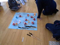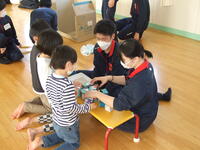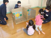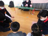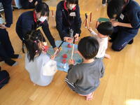 3年生は、家庭科の時間に作成したおもちゃを使って