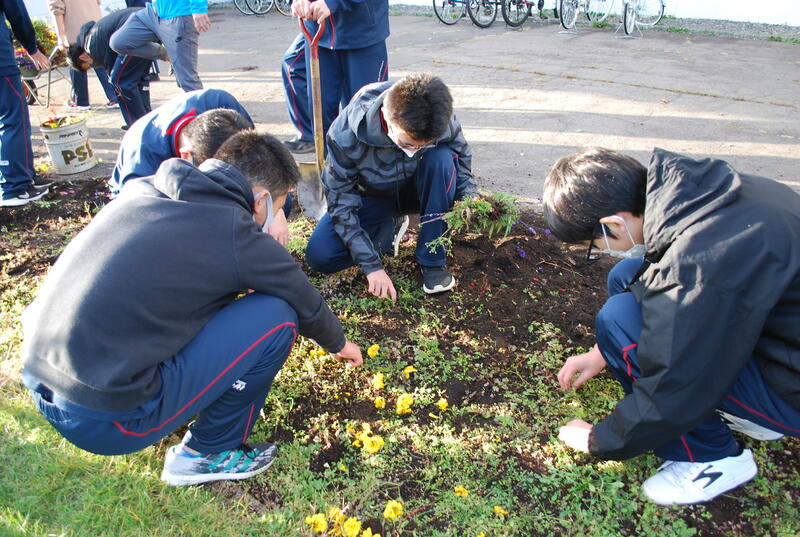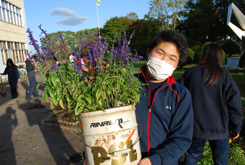 前期の間、学校を美しく飾り上げた花に感謝しながらの作業でした。