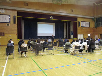 対面式の後は、千歳警察署の方を講師にお招きして、交通安全教室を実施しました。本校では通学に自転車を使用している生徒も多く、しっかり話を聞き、安全な走行をしてほしいと思います。自転車はお年寄りから子どもまで誰もが乗れる乗り物です。「安全装置は自分自身」です。