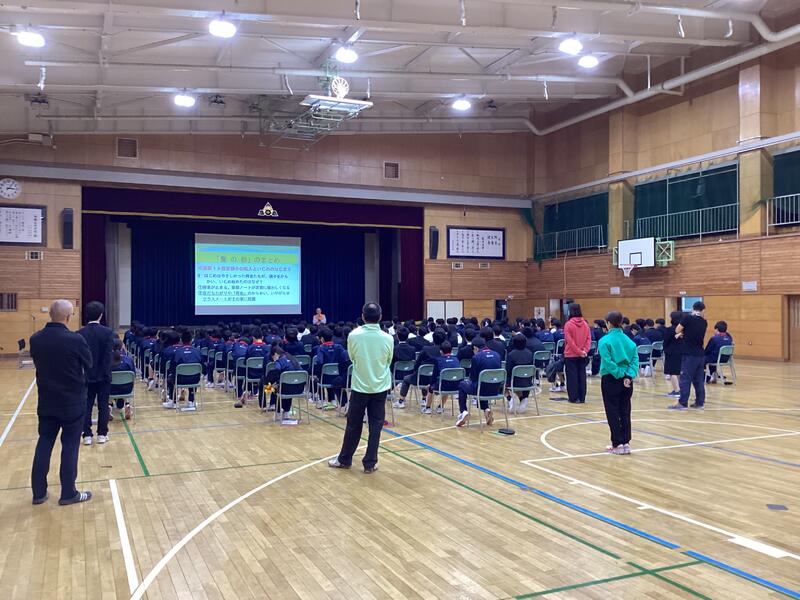 20日(月)は体育館で「みんなでジャンプ」(大縄跳び)を行いました。初めて組むチームでの挑戦です。どうしたら記録が伸びるか、3年生主導で練習を積み重ねていってください。