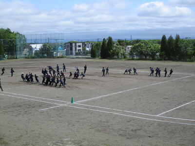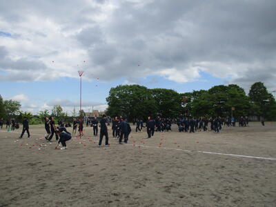 5/31(金)に開催されるスポーツフェスに向けた、縦割りグループ(1組連合・2組連合)での練習が始まりました。
