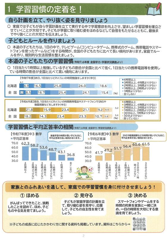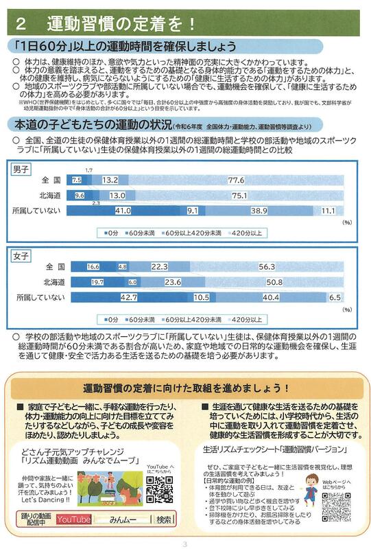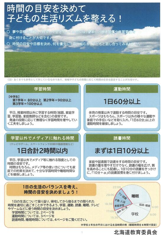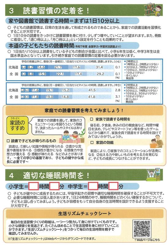 【北海道教育委員会】望ましい生活習慣等に関するリーフレット