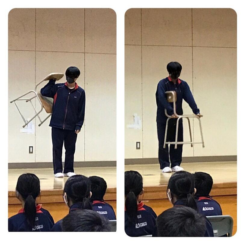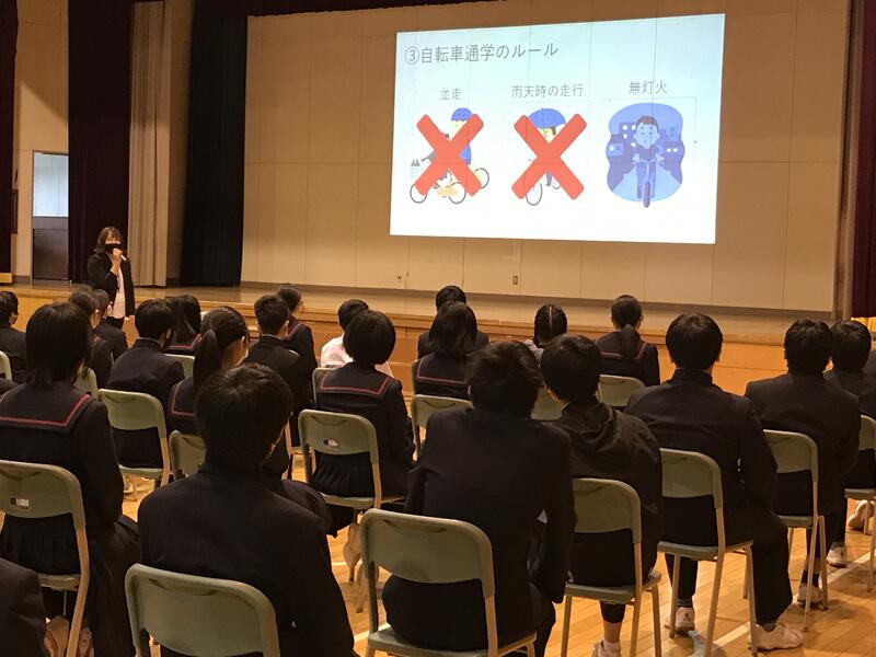同時に学校の校則について説明するきまり集会も行い、椅子の持ち方やタブレットの使い方などの説明を受けて、少しずつ向陽台中学校の雰囲気に馴染むことができました。