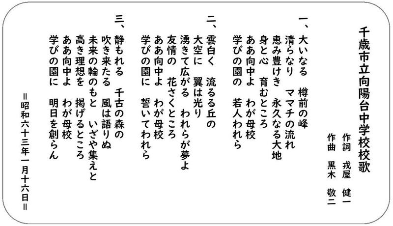 | 昭和61年 | 3月 | 真町中より分離決定,校名「千歳市立向陽台中学校」とする |