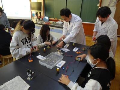 授業では、永久磁石の性質について学び、磁石がどのように力を及ぼすのかを実験を通して確認しました。電流を流すことで磁力を生み出す「電磁石」を実際に製作。電流の強さやコイルの巻き数によって磁力が変わることを体験しました。