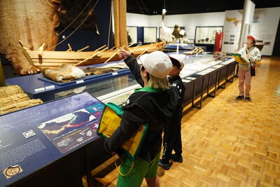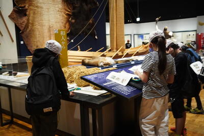 北海道博物館では、北海道の自然や歴史、アイヌ文化についての展示を見学しました。実際の資料や模型を通して、昔の人々のくらしや北海道の成り立ちを学ぶことができました。子どもたちは、展示物を見ながら熱心にメモを取り学習を楽しんでいました。