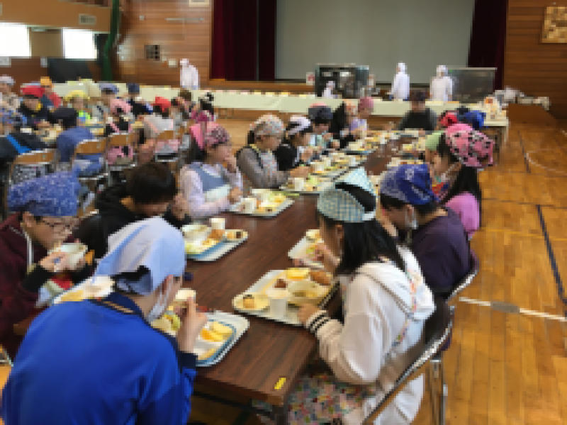 6年生のバイキング給食でのひとこまです。(写真は鮮明になりすぎぬよう加工して掲載することになっております。)
