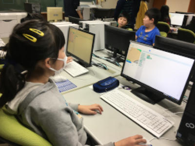 それでは、本日も『緑っ子 振り返りギャラリー』をご覧ください。(5年生算数プログラミング授業のひとこま)