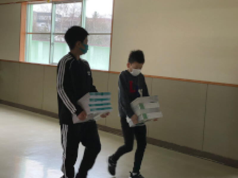 昨日は6年生が登校し、入学式の会場準備や机・教科書運びなど、下級生のために懸命に動いていました。