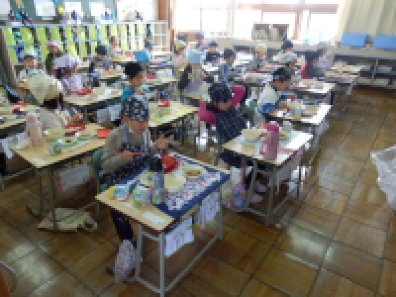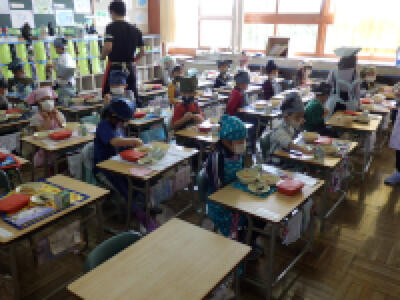 先生のお話をよく聞き、自分たちで配膳することができました。