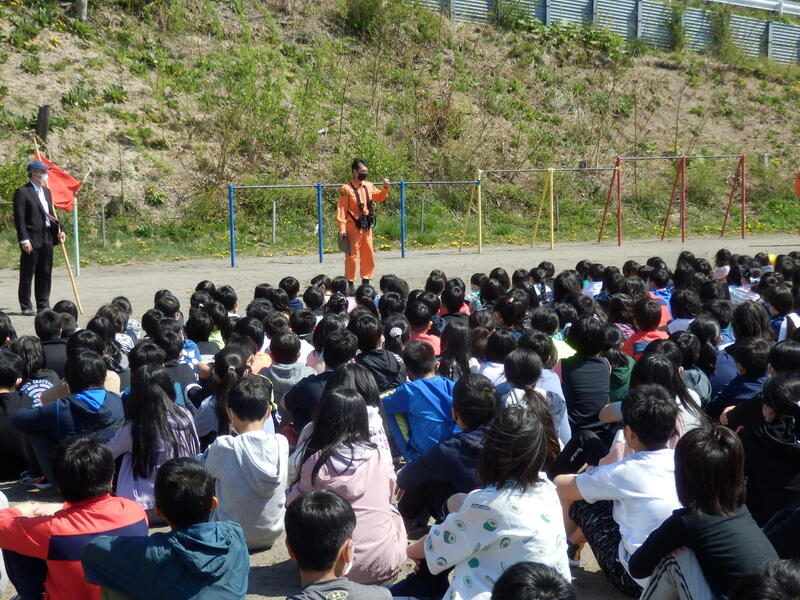 消防署の方から、「学校のどこに消火器があるかを意識しながら過ごしてほしい」と、お話がありました。