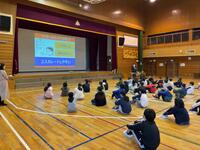 5,6年生は体育館に集まって、KDDIの講師によるスマホ、携帯の安全教室を行いました。実際に起きた事件や被害を基にした例から、いかにして安全を守るかについて学びました。学校での学習に加えて、ご家庭でも使い方等について、十分話し合い、把握しておきたいことですね。