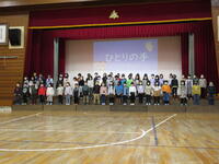 互いの学年の発表を見ることができて本当によかったと思います。低学年の子どもたちは、上の学年の発表を食い入るように見ていました。また、みんなに見られることに緊張した様子もありましたが、どの学年も素晴らしい発表ができていました。