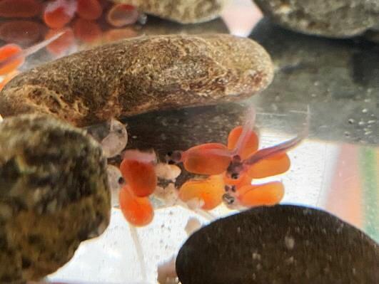 まだおなかにはオレンジ色の栄養のかたまり(さいのう)をつけていて、とてもかわいらしい動きをしています。